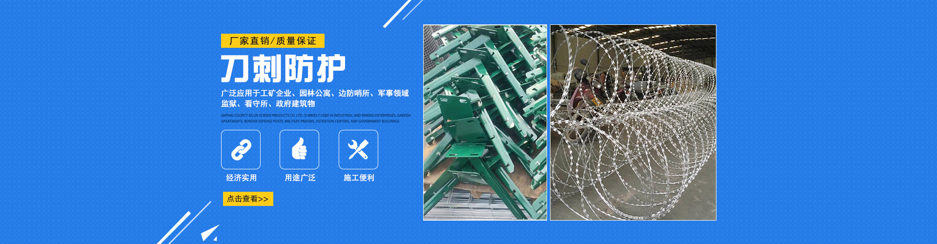 刀片刺繩?是一種新型防護(hù)網(wǎng)產(chǎn)品,具有生產(chǎn)工藝復(fù)雜、防護(hù)效果好、施工方便等優(yōu)點。如果你想知道,請看以下內(nèi)容。